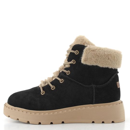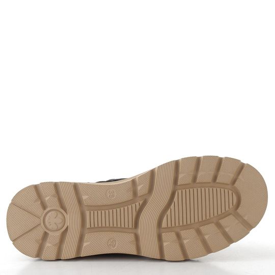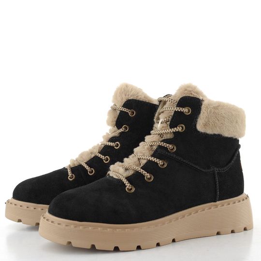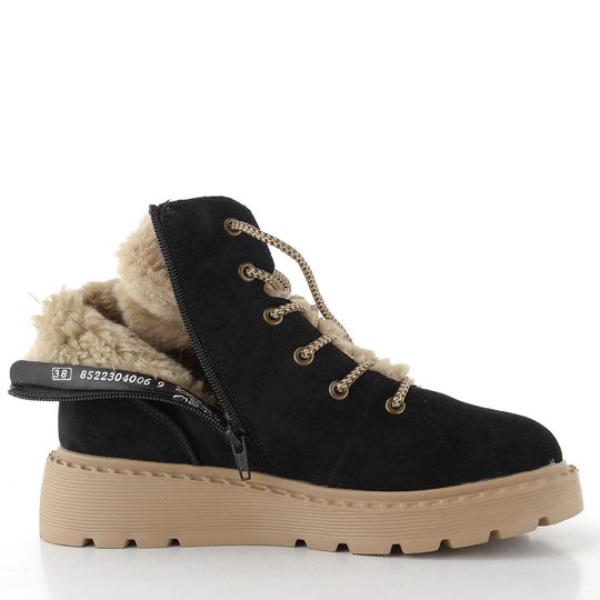 Dámský semišový zimní kotník od značky Rieker je ideální volbou pro chladné podzimní a zimní dny. Tento model v černé barvě s béžovými doplňky kombinuje styl a pohodlí. Svršek z semišové kůže a hebký lem z textilní kožešinky zajišťují příjemný pocit na noze. Kulatá špička a šněrování s kulatými šněrovadly dodávají botám moderní vzhled.