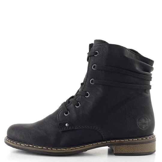 Dámský zimní kotník od značky Rieker je ideálním společníkem pro chladné podzimní a zimní dny. S stylovým šněrováním a módně řasenou zadní částí kotníku se stává nejen praktickým, ale i módním kouskem. Svršek z jemně strukturované syntetiky v elegantní černé barvě je doplněn teplou podšívkou z umělého beránka, která zajišťuje pohodlí i v nízkých teplotách. Pro snadné obutí je na vnitřní straně umístěn zip. Extra měkká stélka potažená filcem a syntetická podešev s hrubším vzorkem poskytují stabilitu a komfort při chůzi. S výškou kotníku 14 cm a podpatek o výšce 3 cm, tento model spojuje styl a pohodlí pro každodenní nošení.