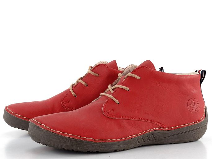 Dámský červený kotník od značky Rieker je ideální volbou pro podzimní a zimní sezónu. Tyto kotníkové boty kombinují komfort a styl díky svému lehkému a pohodlnému šitému provedení. Svršek je vyroben z matné syntetiky s lehce mačkanou strukturou, která dodává botám jedinečný vzhled. Karmínově červená barva a ozdobný textilní proužek na patě s poutkem v barvě trikolory zaručují, že budete vynikat v každém davu.