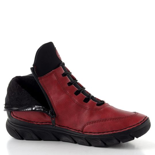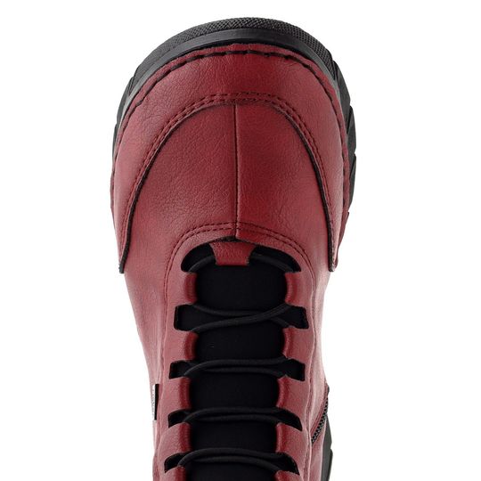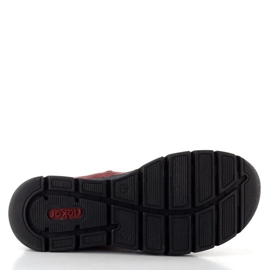 Dámský kotník od značky Rieker je ideálním společníkem pro podzimní a zimní dny. Jeho lehká šitá konstrukce a gumičkové šněrování zajišťují pohodlí a snadné obutí. Svršek z jemně strukturované syntetiky v kombinaci s měkkým textilním lemem dodává botám elegantní vzhled v tlumené červené barvě.