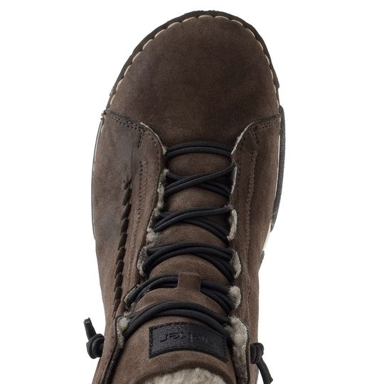 Svršek z broušené syntetiky imituje semiš a dodává botám elegantní vzhled. Vnitřní podšívka z umělého beránku zajišťuje teplo, zatímco extra měkká filcová stélka a flexibilní podešev přispívají k celodennímu komfortu. Výška kotníku 10 cm bez podešve činí tuto obuv skvělou volbou pro každodenní nošení. Nezapomeňte, že pro zvýšení odolnosti vůči vlhkosti doporučujeme použití impregnačních přípravků.