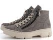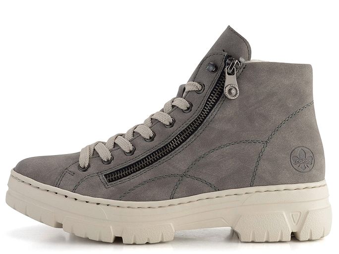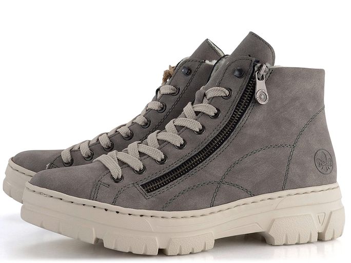 Hledáte pohodlné a stylové boty na zimu? Vyzkoušejte dámský kotník od značky Rieker. Tento model vyniká lehkou konstrukcí a sportovnějším střihem, který je ideální pro každodenní nošení. Svršek je vyroben z matné syntetiky ve stínovaném šedém odstínu s béžovými doplňky, což dodává botám elegantní vzhled. Praktický postranní zip na vnější straně usnadňuje obutí, zatímco ozdobný zip přidává na originalitě. Uvnitř najdete teplou podšívku z umělého beránka, která udrží vaše nohy v teple i v chladném počasí. Filcová vyjímatelná stélka a velmi lehká podešev v kontrastním provedení zajišťují maximální komfort. Výška podpatku je 4,5 cm, což poskytuje dostatečnou podporu bez ztráty pohodlí. Tento model je ideální volbou pro podzimní a zimní sezónu 2023/24.