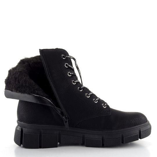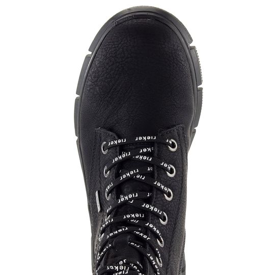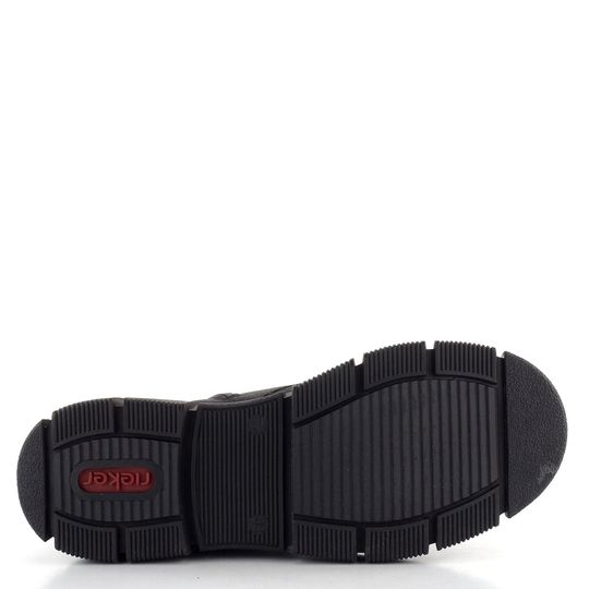 Stylový zimní kotník na vyšší podešvi a s funkční membránou od značky Rieker je ideální volbou pro podzimní a zimní sezónu. Vyrobený ze syntetického materiálu s jemnou strukturou, tento černý kotník zaujme prostornou kulatou špičkou a plochými tkaničkami s potiskem ikony. Na vnější straně se nachází logo, které dodává botě jedinečný vzhled. Pro rychlé obutí je na vnitřní straně zip. Uvnitř naleznete teplou podšívku z textilní střiže a stélku s filcovým potahem, což zajišťuje maximální komfort. Obuv je vybavena vodoodpudivou membránou riekerTEX®, která vás ochrání před vlhkostí. Vysoká podešev s podílem latexu a výškou podpatku 4,5 cm poskytuje stabilitu a pohodlí. Výška kotníku je 14 cm (bez podešve). Tento model je vyroben lepeným způsobem, což zaručuje jeho trvanlivost. Dopřejte si kvalitní a stylovou obuv od značky Rieker, která vás nezklame ani v náročných podmínkách.