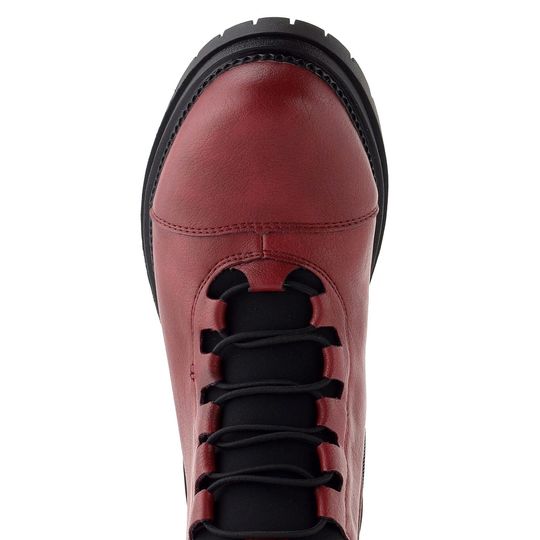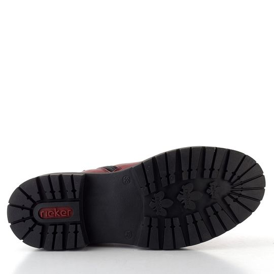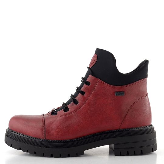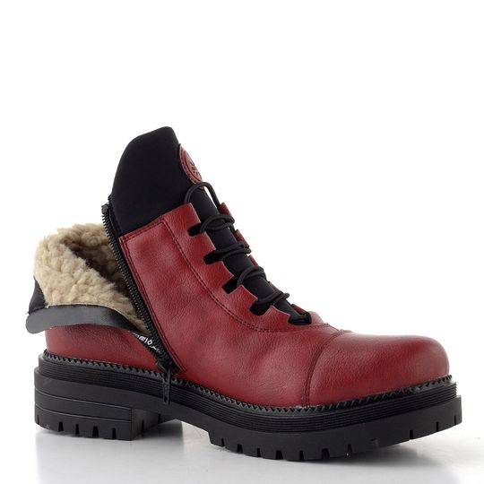 Dámský stylový vyteplený kotník od značky Rieker v atraktivní červeno-černé kombinaci je ideální volbou pro podzimní a zimní dny. Jeho kulatý střih z imitace kůže a softshellové textilie zajišťuje pohodlí a styl. S pružným šněrováním a postranním zipem se snadno obouvá a dokonale přizpůsobí vaší noze.