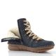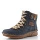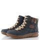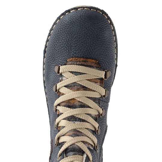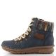 Dámský zimní šněrovací kotník v tmavě modré barvě s pestrobarevným nápletem, postranním zipem a teplou podšívkou.
