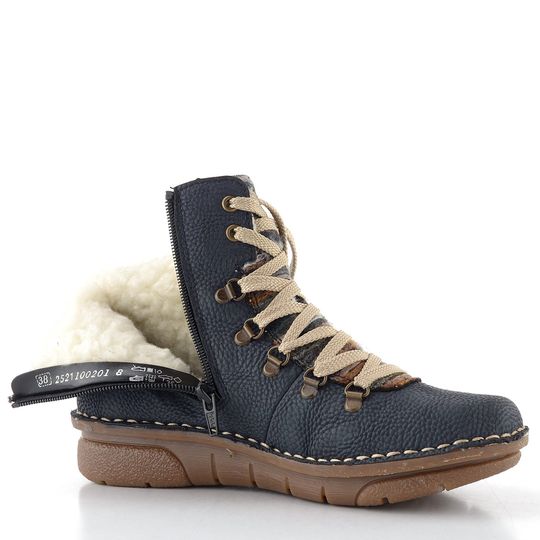 Dámský zimní kotník od značky Rieker je ideální volbou pro chladné podzimní a zimní dny. Jeho flexibilní šitá konstrukce zaručuje pohodlí a snadné nošení. S prostornou kulatou špičkou a měkkým horním lemem z pestrobarevné pleteniny se budete cítit skvěle po celý den. Praktické šněrování s kovovými průvlaky a postranní zip usnadňují obutí. Vnitřní podšívka z husté střiže a vyjímatelná vložka potažená filcem poskytují extra pohodlí. S výškou kotníku 11 cm a ohebnou latexovou podešví se tento model skvěle hodí do městského prostředí. Zvolte kvalitu a styl s tímto jedinečným kouskem od Rieker.