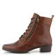Dámský šněrovací kotník v tmavší hnědé barvě, s postranním zipem a s teplejší podšívkou uvnitř.