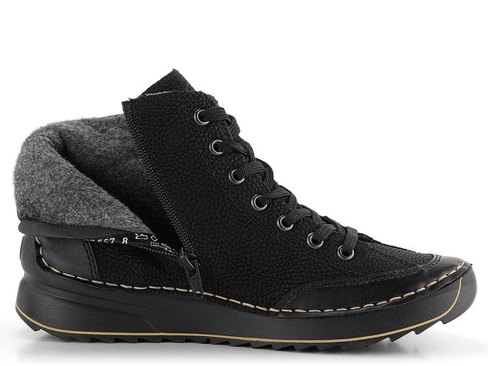 Dámský zimní šněrovací kotník v pohodlném širším provedení s postranním zipem pro snadné obutí.
