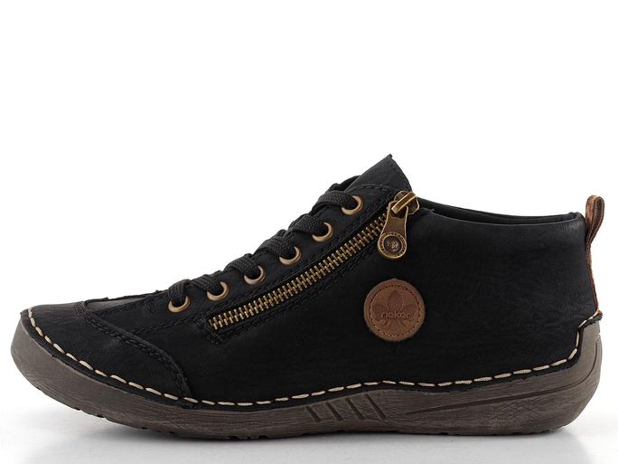 Pohodlné a stylové, to jsou Rieker šněrovací kotníky se zipem v elegantní černé barvě, které oceníte během podzimních a zimních dnů. Tyto dámské boty kombinují praktické šněrování s postranním zipem, což usnadňuje obutí a zaručuje dokonalé přizpůsobení noze. Vyrobeny z matné syntetiky, poskytují nejen moderní vzhled, ale také teplejší vlasovou podšívku pro maximální komfort. Extra měkká filcová stélka a lehká, flexibilní podešev zajišťují příjemný pocit při každém kroku. S výškou kotníku cca 6,5 cm a měkčeným obvodovým lemem se stanou vaším oblíbeným kouskem pro každou příležitost. Zvolte kvalitu a styl s Rieker!