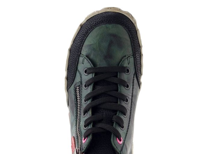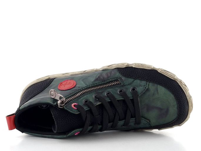 Dámský kotník od značky Rieker spojuje pohodlí a styl v jednom. Tento model, vyrobený z kombinace mačkané kůže a strukturované syntetiky, přichází v atraktivní zelené barvě s šedým nádechem, která se skvěle hodí pro podzimní a zimní sezónu. Díky prostornému kulatému střihu je ideální pro širší chodidla, zatímco postranní zip usnadňuje obutí.