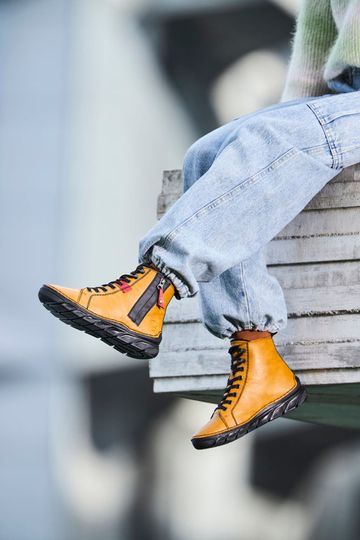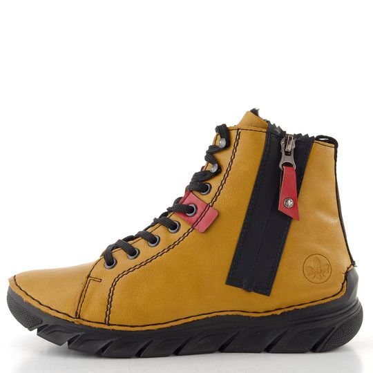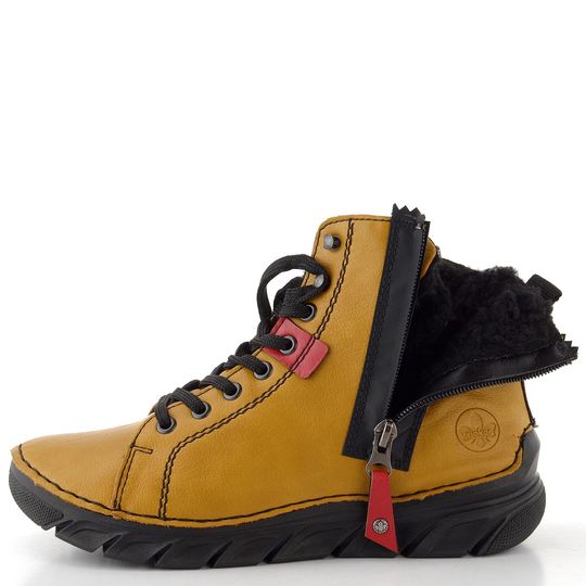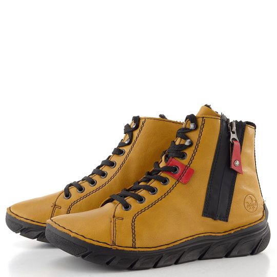Zima si žádá styl a pohodlí, a právě to nabízí Rieker šněrovací kotník se zipem v jedinečné hořčicově žluté barvě. Tento model, určený pro ženy, se pyšní prostorným kulatým střihem, který je ideální i pro mírně širší chodidlo. Svršek z jemně strukturovaného syntetického materiálu zajišťuje nejen atraktivní vzhled, ale i trvanlivost.