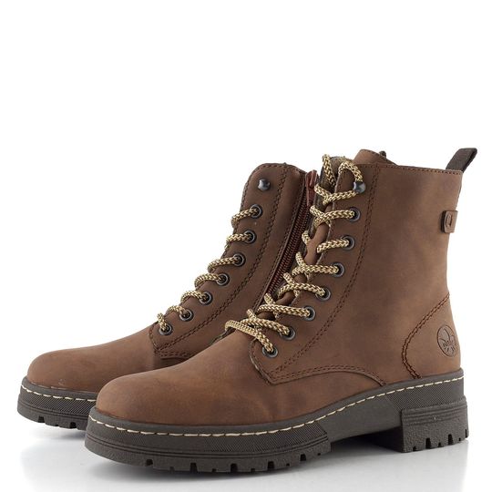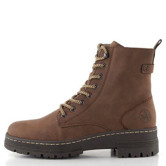 Dámský zimní kotník od značky Rieker spojuje styl s pohodlím. Tento model v pohorkovém stylu se vyznačuje kulatým tvarem špičky a svrškem z matné syntetiky v čokoládově hnědé barvě. Klasické šněrování s kulatými tkaničkami a praktickými háčky dodává botám šmrnc, zatímco zip na vnitřní straně usnadňuje obouvání. Uvnitř naleznete teplou filcovou podšívku a vyjímatelnou vložku, která poskytuje podporu nožní klenbě. Latexová podešev s hrubým vzorkem a širokým podpatkem zaručuje stabilitu a komfort při každém kroku. Výška kotníku je 13 cm, což z něj činí ideální volbu pro chladné dny.