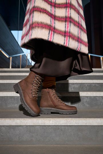 Dámský šněrovací kotník, s postranním zipem, teplou podšívkou a měkkou vyjímatelnou vložkou.