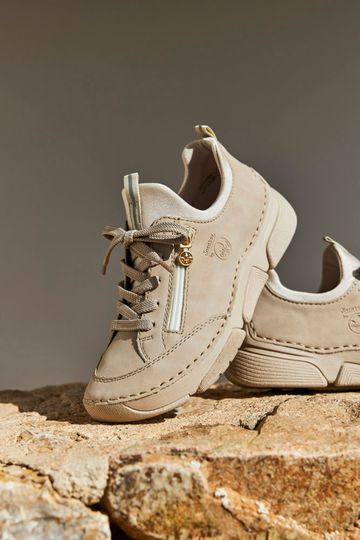 Dámské béžové polobotky v ležérním střihu se šněrováním a pružným kotníkovým lemem.