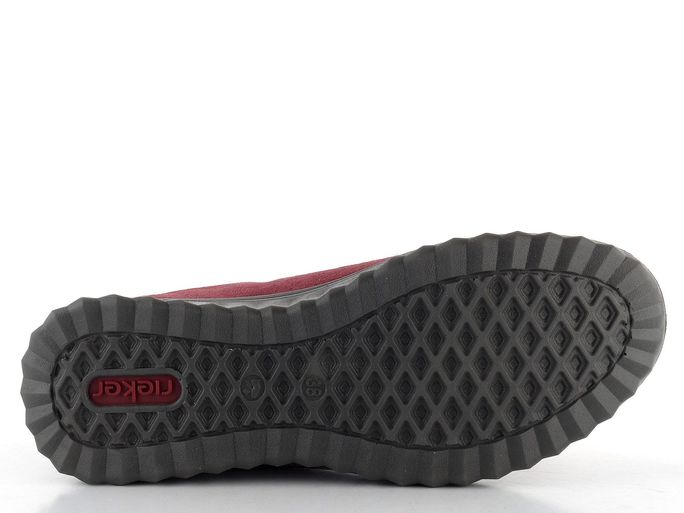 Zažijte komfort a styl s dámskými polobotkami od značky Rieker. Tyto boty kombinují vínově červený semišový svršek s funkčním zipem pro snadné obutí. Šněrování se světle šedými tkanicemi dodává botám moderní vzhled. Uvnitř najdete měkce polstrovanou textilní podšívku a vyjímatelnou vložku se zesílenou patní zónou, která podporuje pohodlí při každém kroku. Díky vodoodpudivé membráně riekerTEX® zůstanou vaše nohy v suchu i za nepříznivého počasí. S podpatkem o výšce 3,5 cm a flexibilní podešví se tyto boty stanou ideální volbou pro městské prostředí i lehké procházky.