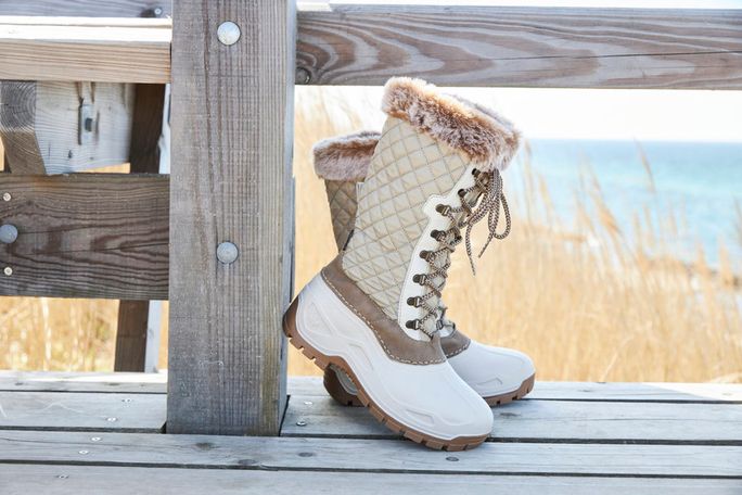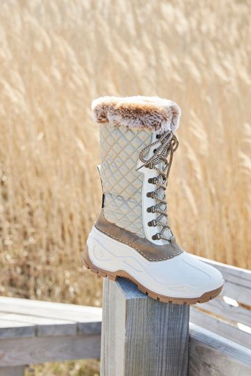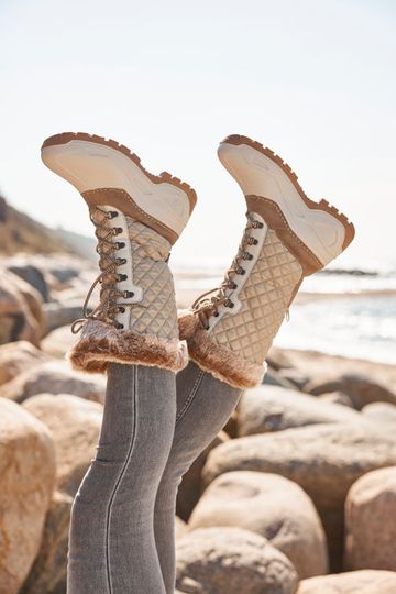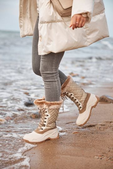 Dámské šněrovací polokozačky v béžových tónech, vybavené teplou podšívkou a funkční membránou.