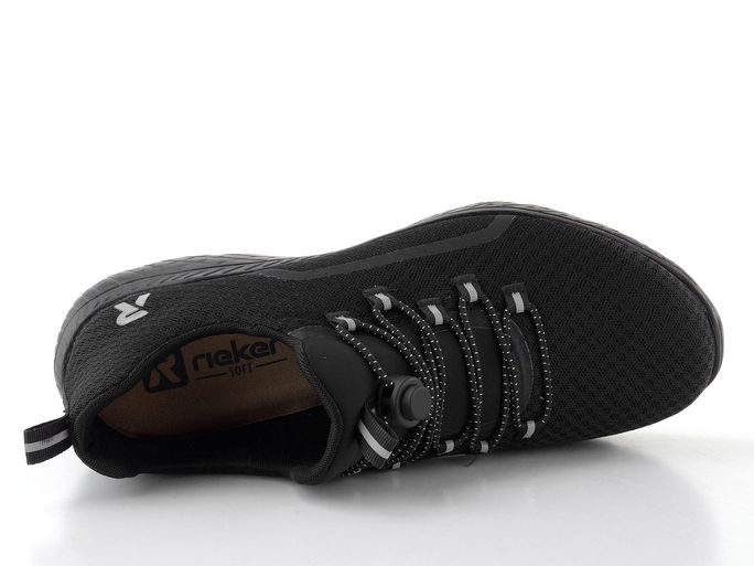 Černé dámské tenisky od značky Rieker jsou ideální volbou pro jarní a letní dny. Tento model M5070-00 kombinuje sportovní styl s maximálním pohodlím, díky čemuž se hodí na každodenní nošení. Prozouvací design usnadňuje obouvání, zatímco gumička místo šněrování umožňuje snadné přizpůsobení nártové oblasti.