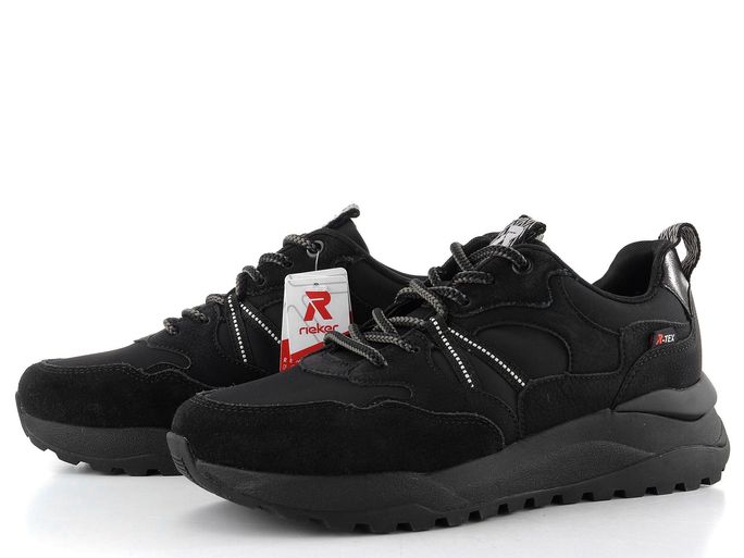 Hledáte stylové a pohodlné tenisky pro každodenní nošení? Rieker Sport černé tenisky s membránou W2501-00 jsou ideální volbou pro ženy, které ocení spojení moderního designu a komfortu. Tyto tenisky s vodoodpudivou membránou R-TEX® zajistí, že vaše nohy zůstanou v suchu i za nepříznivého počasí. Svršek z kvalitní syntetiky a textilie v elegantní černé barvě s šedými detaily dodává šmrnc každému outfitu.