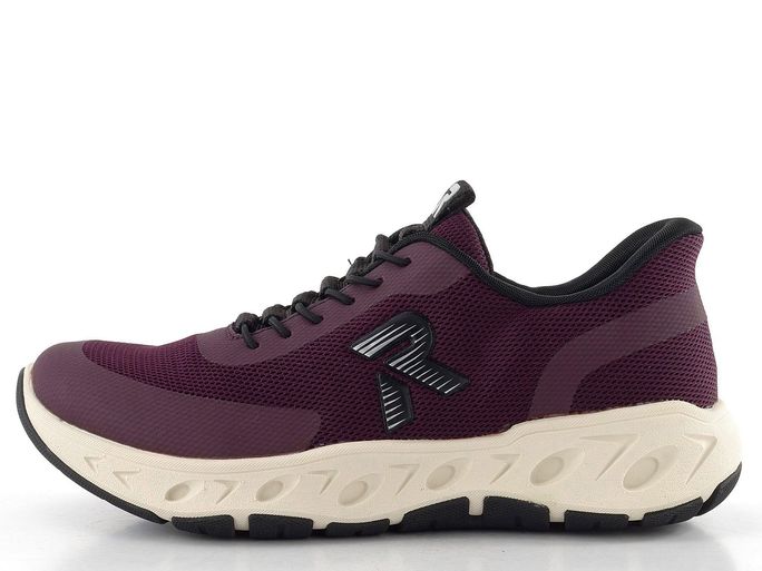 Dámské tenisky značky Rieker v elegantní ostružinově fialové barvě jsou ideálním společníkem pro vaše podzimní a zimní aktivity. Tyto 100% vegan tenisky jsou vyrobeny bez živočišných složek a zaručují tak šetrnost k životnímu prostředí. Svršek z prodyšné textilie v kombinaci s matnou fólií zajišťuje komfort během celého dne, zatímco gumičkové šněrování bez možnosti dotažení usnadňuje obouvání. Díky funkci Ready2GO si je obujete snadno a rychle, a to bez použití rukou. Extra měkká stélka z paměťové pěny a odlehčená sportovní podešev s latexovým nášlapem přispívají k maximálnímu pohodlí. Vybavte se stylově a pohodlně s teniskami, které splňují vysoké standardy kvality a designu.