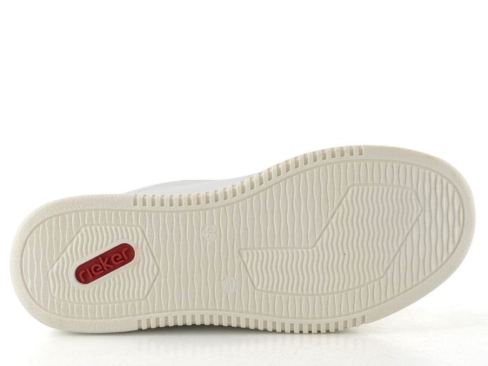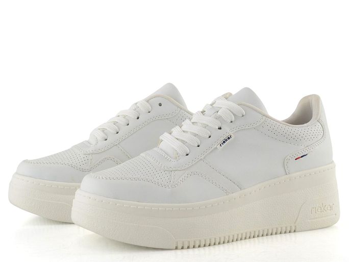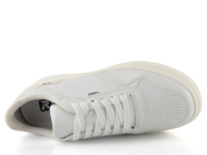 Stylové dámské tenisky od značky Rieker v oblíbené bílé barvě jsou ideální volbou pro jarní a letní dny. Tyto tenisky kombinují sportovní styl a pohodlí, což z nich činí perfektní obuv pro každodenní nošení. Svršek z hladké syntetiky a měkčený kotníkový lem zajišťují komfort při chůzi. Klasické šněrování s plochými tkaničkami a decentní výšivka v barvě trikolory dodávají teniskám šmrnc.