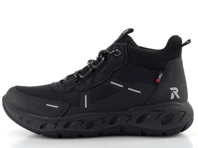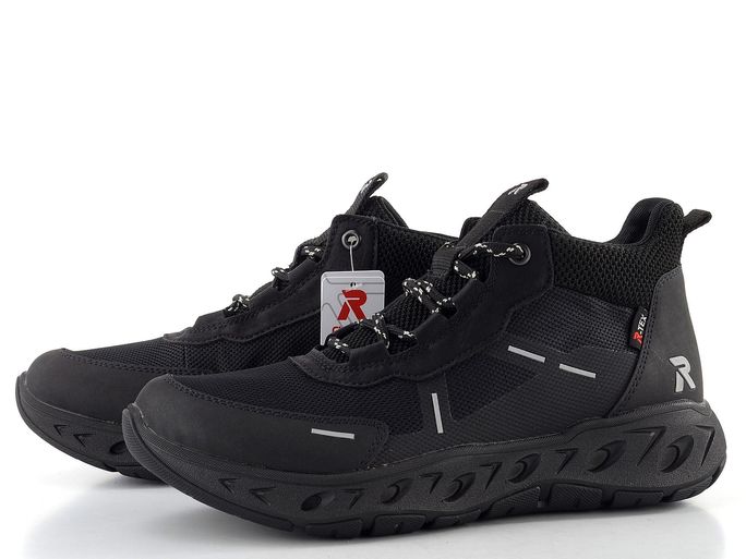 Dámský kotník od značky Rieker spojuje styl a komfort v jednom. Tento model M6500-00 je ideální volbou pro podzimní a zimní dny, kdy oceníte jeho vodoodpudivou membránu R-TEX®, která chrání vaše nohy před vlhkostí. Svršek z prodyšného textilu a matné syntetiky zajišťuje pohodlí a elegantní vzhled. Extra měkká vložka z paměťové pěny se přizpůsobí vaší noze a umožní celodenní nošení bez nepohodlí. Klasické šněrování a polstrovaný kotníkový lem dodávají botám na atraktivitě a praktickosti. S výškou kotníku 7 cm a lehkou sportovní podešví jsou tyto boty skvělým společníkem na procházky po městě i do kanceláře.