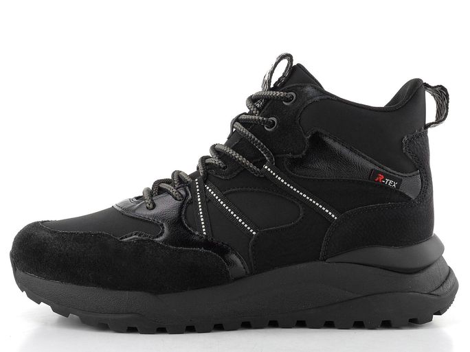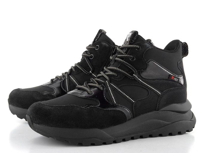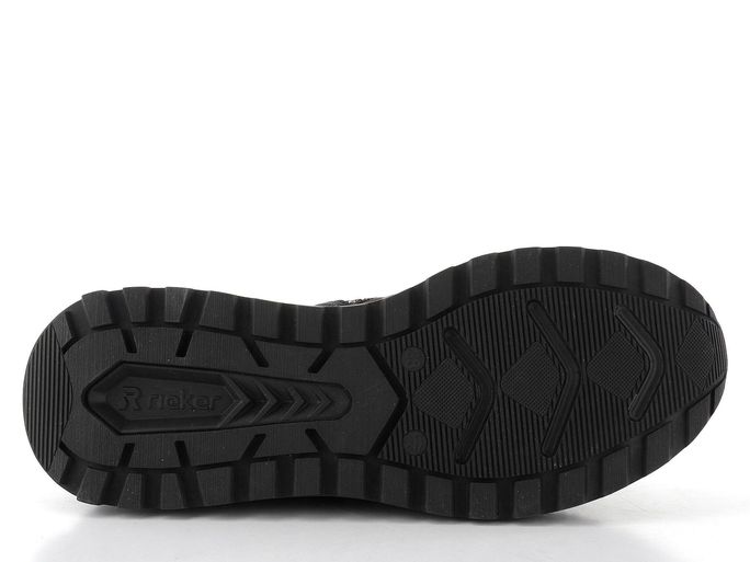 Stylové kotníkové tenisky značky Rieker z kolekce Rieker Sport jsou ideální volbou pro podzimní a zimní dny. Jejich sportovní design v černé barvě s elegantními světle šedými detaily zaručuje, že se stanou skvělým doplňkem vašeho šatníku. Svršek z kombinace syntetiky a textilie je nejen atraktivní, ale také praktický, zatímco vodoodpudivá membrána R-TEX® chrání vaše nohy před nepříznivým počasím.