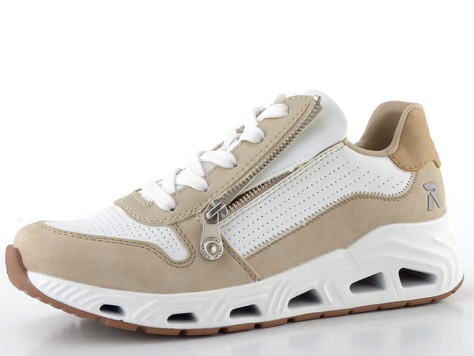 Dámské tenisky Rieker kombinují styl a pohodlí, což z nich činí ideální volbu pro jarní a letní dny. Jejich ultralehká konstrukce a střih do kulaté špičky zajišťují maximální komfort, zatímco kombinace béžové a bílé barvy dodává šmrnc každému outfitu. Svršek z hladké syntetiky je doplněn o ozdobnou perforaci a reflexní prvek na patě, který zvyšuje viditelnost. Praktický postranní zip usnadňuje obutí, zatímco polstrovaný kotníkový lem a měkká vyjímatelná vložka s podporou nožní klenby se postarají o pohodlí při každém kroku. Vyzkoušejte tenisky Rieker a užijte si lehkost a eleganci na každém kroku!