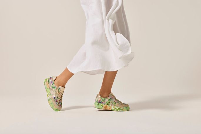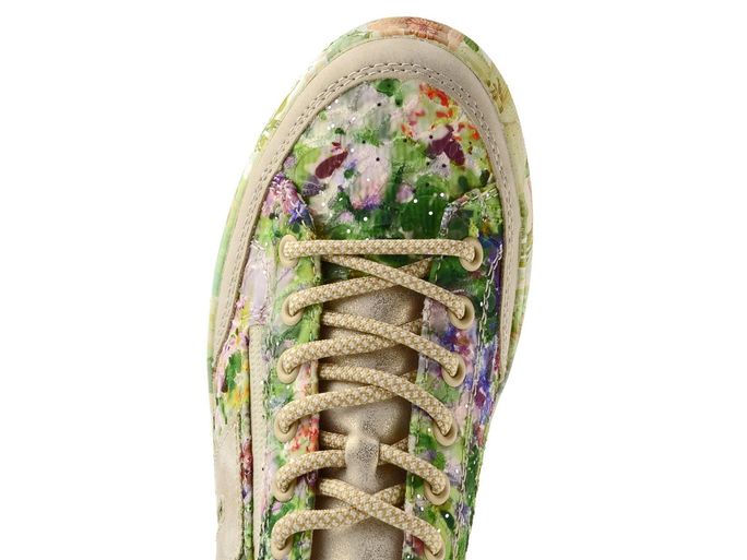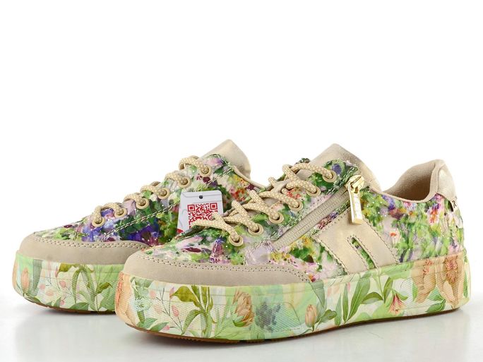 Originální dámské tenisky s barevným květinovým motivem od značky Rieker přinášejí svěží styl a pohodlí pro jarní a letní dny. Tyto tenisky vynikají textilním svrškem s výšivkou a flitry, který je doplněn metalickou syntetikou a především barevným květinovým motivem v zelených a fialových tónech.