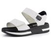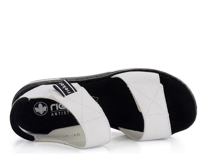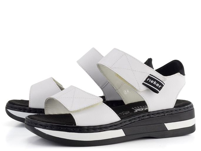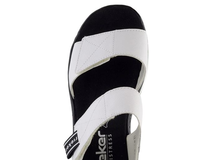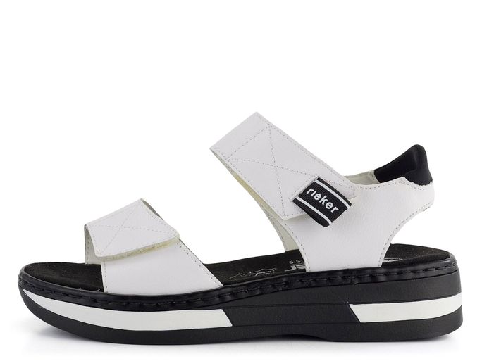 Hledáte pohodlné a stylové sandály na jaro a léto? Dámské sportovnější sandály v černo-bílém provedení od značky Rieker vám přinášejí dokonalou kombinaci komfortu a elegance. Tyto sandály mají prostornou kulatou špičku a svršek tvořený jemně strukturovanou, povrstvenou kůží, která zajišťuje dlouhou životnost a snadnou údržbu. Bílá barva s černými doplňky dodává sandálům moderní vzhled. Hladká syntetická podšívka a měkce polstrovaný patní pásek zvyšují komfort při nošení. Sandály nabízejí variabilní nastavení obou pásků na suché zipy, což umožňuje přizpůsobení podle vašich potřeb. Měkká stélka potažená broušenou textilií a pevná vyšší podešev zajišťují pohodlí po celý den. Vyrobeno šitým výrobním způsobem pro maximální odolnost. Ideální volba pro každodenní nošení ve městě i na lehké procházky.