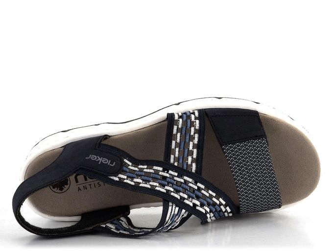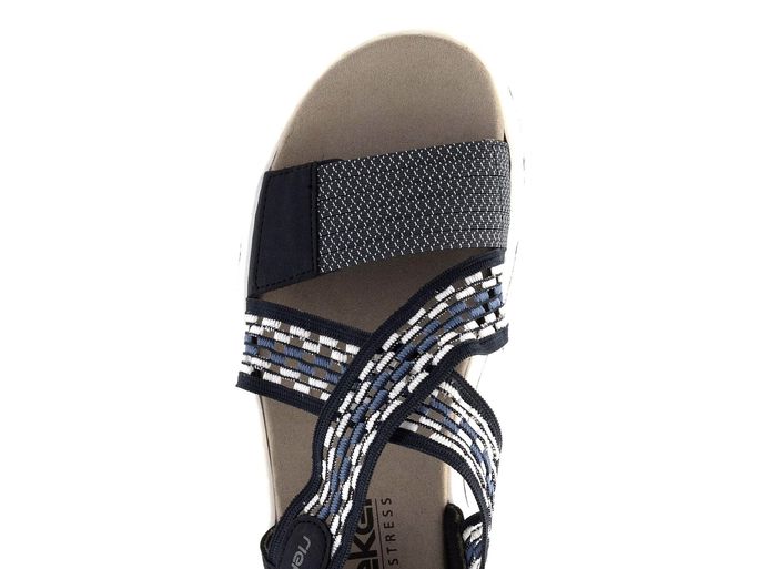 Objevte dokonalou kombinaci stylu a pohodlí s dámskými sportovními sandály značky Rieker. Tyto sandály v temně modré barvě se vyznačují syntetickým vrchovým materiálem doplněným o textilní pruženku, která zajišťuje snadné obutí a příjemnou chůzi. Křížené nártové pásky jsou pružné a přední pásek lze variabilně nastavit pomocí suchého zipu. Patní pásek je měkce polstrovaný textilií, což zvyšuje komfort při nošení.