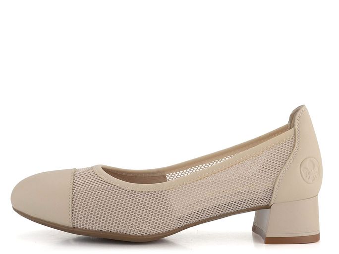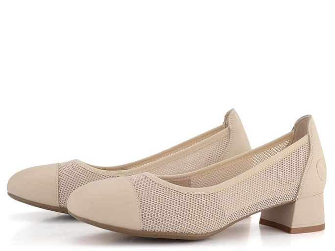 Pro dámy, které hledají kombinaci elegance a komfortu, jsou zde světlé lodičky od značky Rieker. Tyto lodičky jsou ideální jak pro každodenní nošení, tak pro slavnostnější příležitosti. Svršek je vyroben z hladké kůže v kombinaci s textilní síťovinou, což zajišťuje nejen stylový vzhled, ale i prodyšnost. Extra měkká kožená stélka s podporou podélné nožní klenby poskytuje maximální pohodlí při každém kroku. Kulatá špička a vyztužený vnitřní opatek ze syntetiky přispívají k pohodlnému nošení. Paspulka v obvodu zajišťuje, že bota perfektně padne na nohu. Flexibilní podešev s příměsí latexu a široký podpatek o výšce 3,7 cm dodávají stabilitu a komfort. Vybírejte z naší kolekce pro jaro/léto 2024 a dopřejte si kvalitu, kterou si zasloužíte.