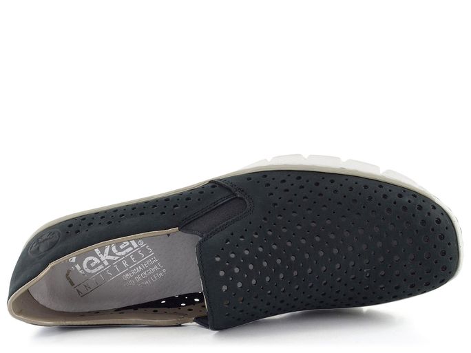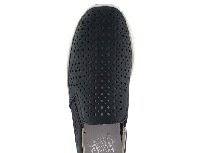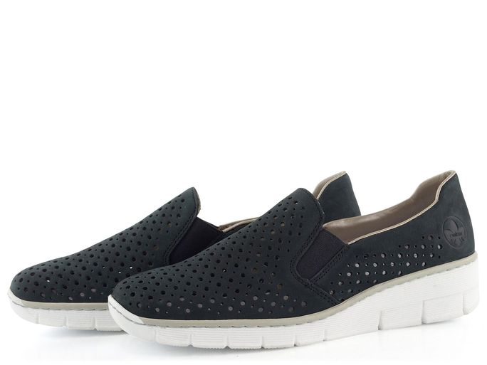 Dámské polobotky na klínu od značky Rieker jsou ideální volbou pro jarní a letní sezónu. Vyrobeny z kvalitní nubukové kůže, nabízejí nejen elegantní vzhled, ale i vysoký komfort. Temně modrý odstín s prořezávaným vzorem dodává botám moderní a stylový nádech. Díky dvěma pruženkám na nártu je obutí rychlé a snadné. Uvnitř najdete měkkou koženou stélku a měkčený lem pro maximální pohodlí. Odlehčená a flexibilní podešev s malým klínkem o výšce 3,5 cm zajistí, že každý krok bude lehký a jistý. Šitý výrobní způsob garantuje dlouhou životnost a trvalou kvalitu, kterou značka Rieker přináší. Tyto polobotky jsou perfektní volbou pro každodenní nošení do města, kanceláře nebo na lehkou procházku. Vyzkoušejte je a zažijte spojení stylu a komfortu.
