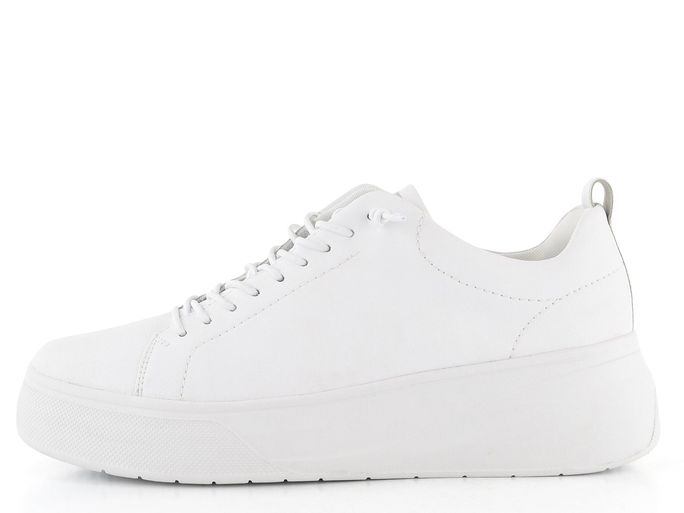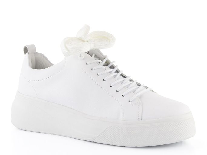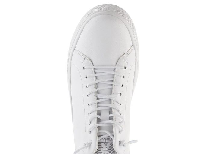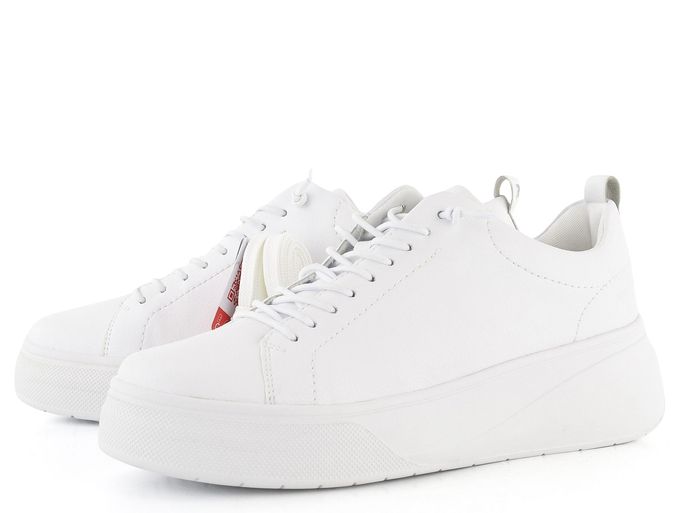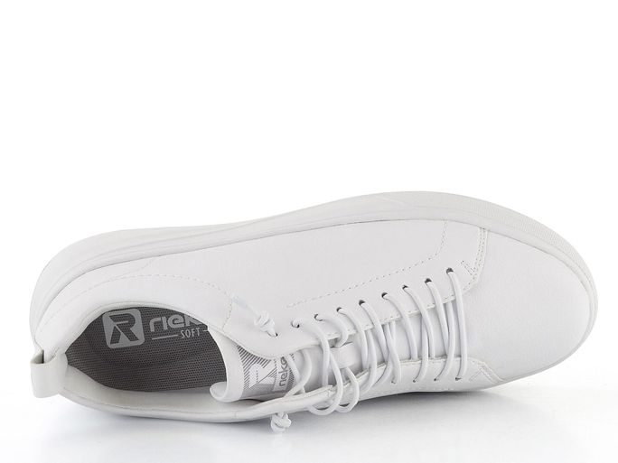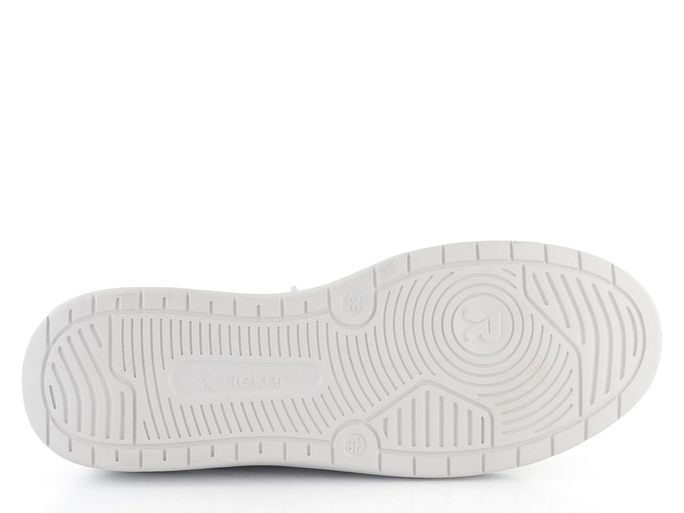 Představujeme stylové a pohodlné dámské tenisky od značky Rieker. Tyto boty jsou součástí volnočasové kolekce Sport&Style, která navazuje na úspěšnou kolekci R-evolution. Svršek z jemně strukturované povrstvené kůže v čistě bílé barvě dodává těmto teniskám elegantní vzhled. Pružné gumičkové šněrování s uzlíky zajišťuje snadné nazouvání, ale klasické tkaničky jsou také součástí balení. Uvnitř najdete textilní podšívku a měkkou vyjímatelnou stélku s podporou podélné nožní klenby a perforací pro lepší prodyšnost. Lehká vysoká platforma a polstrovaný kotníkový lem zaručují komfort při každém kroku. S výškou podpatku 5,3 cm jsou tyto tenisky ideální volbou pro jarní a letní dny ve městě.