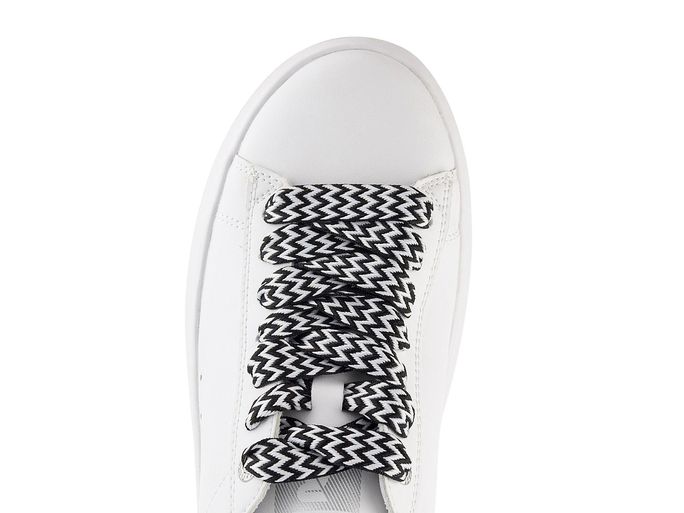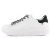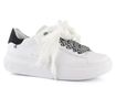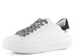 Dámské bílé kožené tenisky na vysoké módní platformě, oživené černými doplňky.