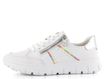 Dámské kožené tenisky v širším střihu a bílé barvě, s postranním zipem a šněrováním.