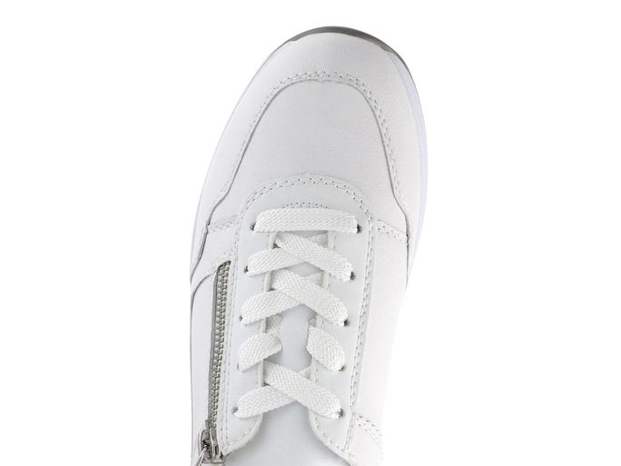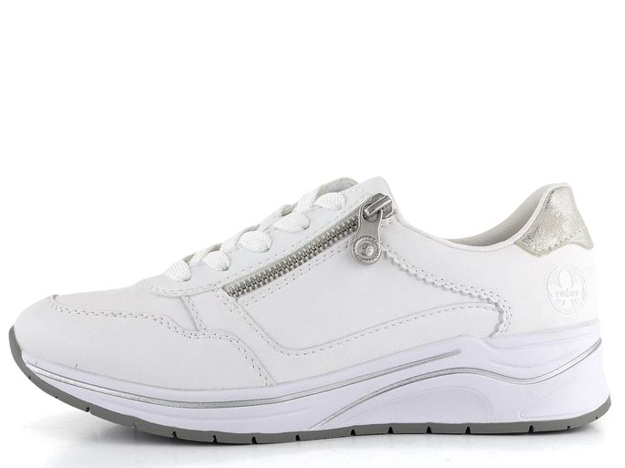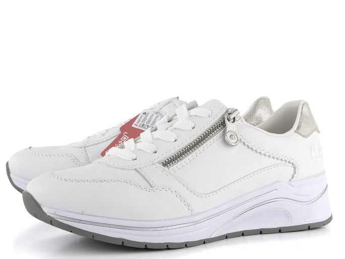 Dámské tenisky značky Rieker N9501-80 spojují styl a pohodlí v jednom. Tyto trendy boty v čisté bílé barvě jsou ideální volbou pro každodenní nošení, ať už vyrazíte do města nebo na lehkou procházku. Svršek z jemně strukturované kůže a syntetické detaily zajišťují nejen skvělý vzhled, ale i dlouhou životnost.