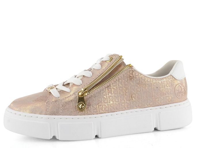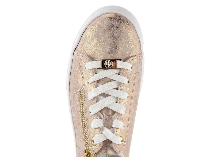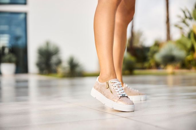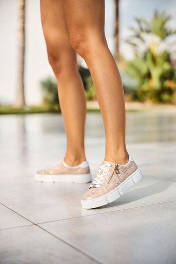 Pro ženy, které hledají styl a pohodlí, jsou tu dámské tenisky od značky Rieker v trendy růžově zlatém metalickém provedení. Tyto polobotky nabízejí prostornou kulatou špičku a hladký syntetický svršek s vytlačovaným vzorem. Funkční postranní zip usnadňuje nazouvání, zatímco měkká nášlapná stélka potažená kůží zajišťuje komfort při každém kroku. Vyšší rovná platforma vyrobená z lehkého syntetického materiálu dodává botám moderní vzhled. Ideální volba pro jarní a letní sezónu, která kombinuje módní design s praktickými vlastnostmi.