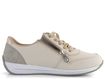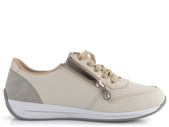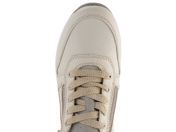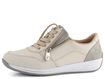 Dámské kožené tenisky v širším střihu a světle béžové barvě, s postranním zipy a šněrováním.