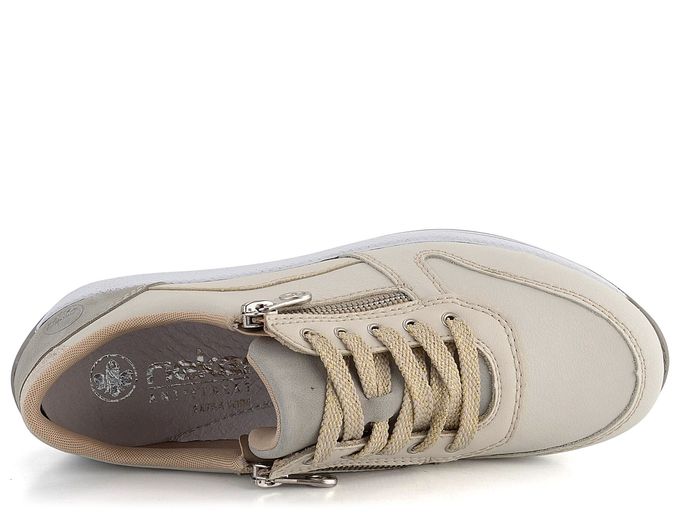 Dámské tenisky značky Rieker nabízejí kombinaci stylu a pohodlí, ideální pro jarní a letní sezónu. Tyto šněrovací boty se zipy jsou navrženy v prostornějším střihu "H", což je výrobcem označeno jako "extra width", a poskytují tak dostatek místa pro vaše nohy.