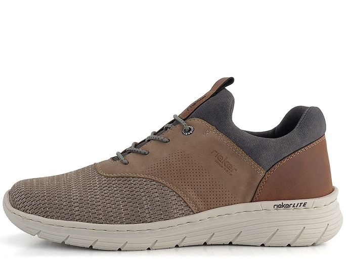Stylové a pohodlné pánské tenisky od značky Rieker v kombinaci béžové a hnědé barvy jsou ideální volbou pro jaro a léto. Tento sportovnější, prozouvací typ obuvi bez volného jazyka se snadno nazouvá díky pružným gumičkám místo šněrování. Svršek je tvořen kombinací textilních a syntetických materiálů, což zajišťuje lehkost a prodyšnost. Vnitřní polstrování s textilní podšívkou a měkká stélka s pěnovým základem poskytují maximální komfort při každém kroku. Extra flexibilní podešev a šitý výrobní způsob dodávají obuvi flexibilitu a poddajnost při chůzi. Tato obuv je nejen stylová, ale také praktická pro každodenní nošení ve městě nebo na lehkou procházku.