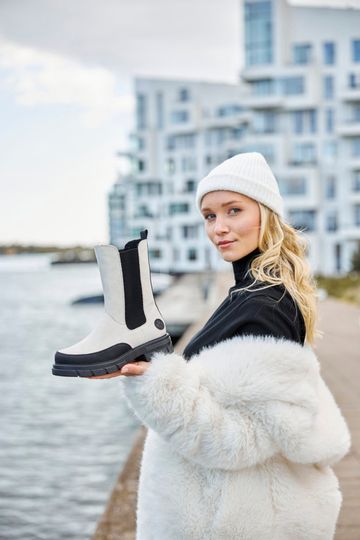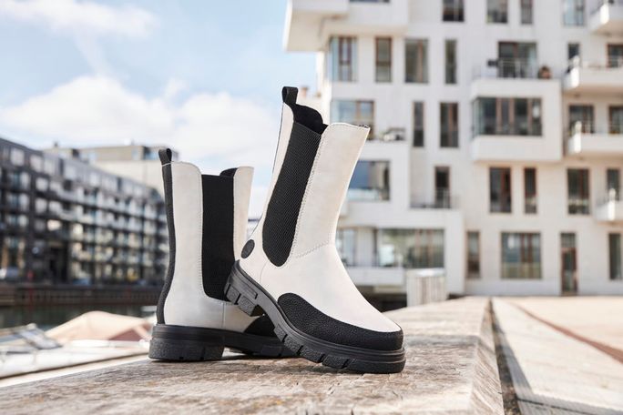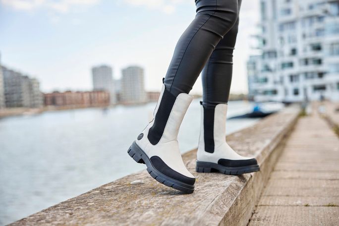 Trendový model pro podzim a zimu od značky Rieker přináší pohodlí a styl v jednom. Vyšší chelsea kotníkové boty v krémově béžové barvě s kontrastními černými doplňky jsou ideální volbou pro chladnější dny. Díky širokým pružným vsadkám se snadno obouvají a zajišťují komfort při každém kroku. Svršek je vyroben z matné syntetiky, která je odolná a snadno se udržuje. Mírně vyteplená jemná vlasová podšívka a měkká filcová stélka poskytují teplo a pohodlí. Široký, nízký podpatek o výšce 4 cm a vyšší latexová podešev s traktorovým vzorkem zaručují stabilitu a pohodlí na každém povrchu. Tento model je ideální volbou pro ženy, které hledají kombinaci funkčnosti a módního vzhledu.