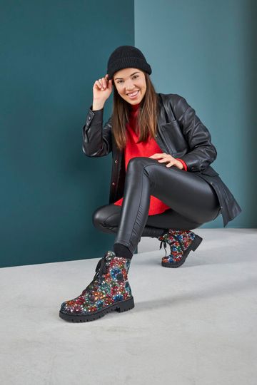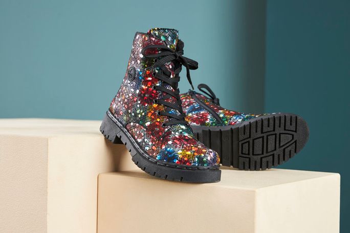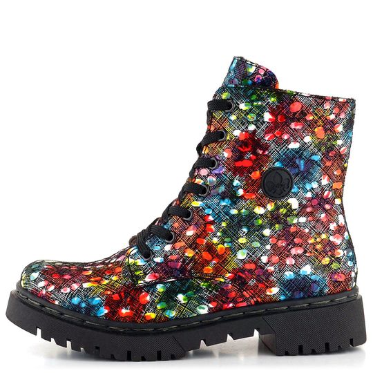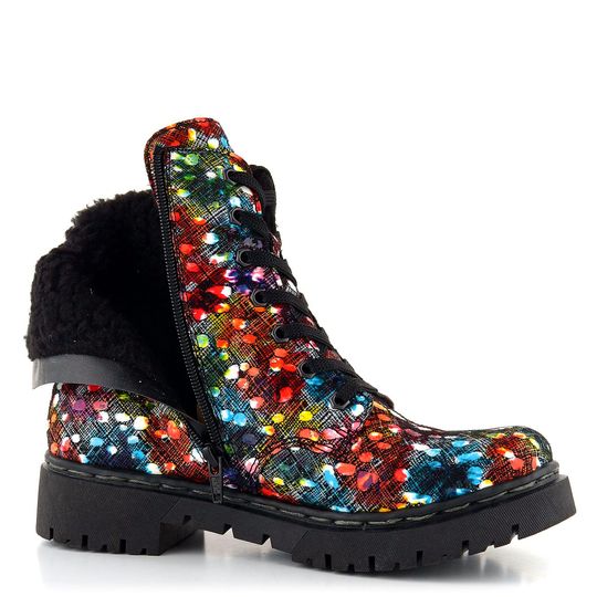 Objevte kouzlo podzimní a zimní sezóny s dámskými kotníkovými botami od značky Rieker, které vynikají svým jedinečným designem a komfortem. Tyto vyšší šněrovací boty s barevným potiskem a černými doplňky (převládající barvy: červená, modrá, zelená, žlutá) jsou ideální volbou pro ženy, které hledají styl i pohodlí.