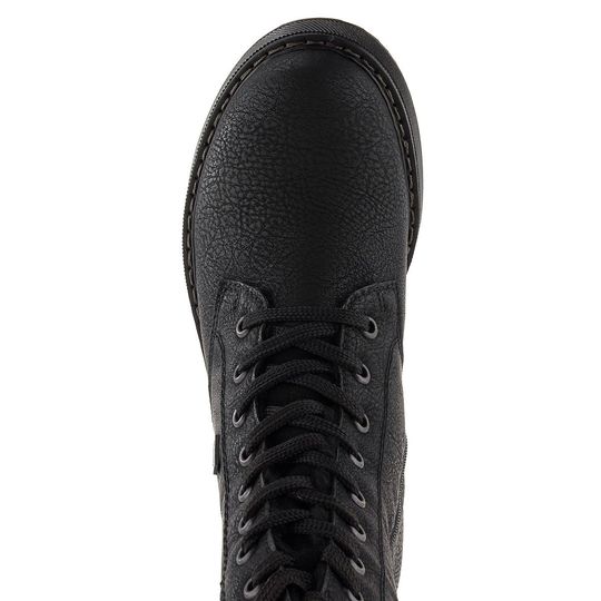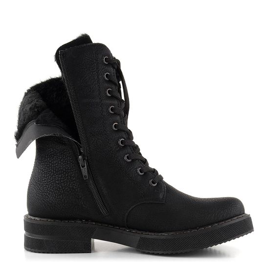 Dámský zimní kotník v nadčasovém stylu od značky Rieker vám poskytne nejen styl, ale i maximální komfort. Svršek z matné strukturované syntetiky v kombinaci s horním lemem z imitace semiše zaručuje elegantní vzhled. Díky šněrování a zipu na vnitřní straně je obouvání snadné a rychlé. Uvnitř najdete teplou podšívku z černého umělého beránka, která vás udrží v teple i v chladných dnech. Stélka je potažená filcem, což přispívá k pohodlí při každém kroku. Vodoodpudivá membrána riekerTEX® zajišťuje, že vaše nohy zůstanou suché. Latexová platforma s hrubším vzorkem a široký pohodlný podpatek o výšce 4 cm poskytují stabilitu a pohodlí. Výška kotníku je 19 cm (bez podpatku), což dodává botám moderní vzhled. Tento model je ideální volbou pro podzimní a zimní sezónu 2022/23.