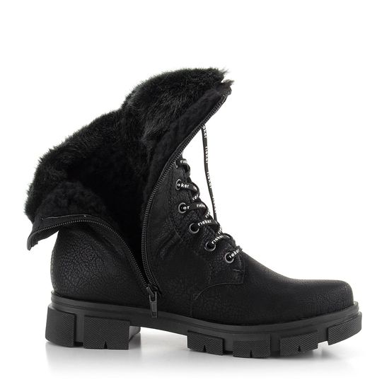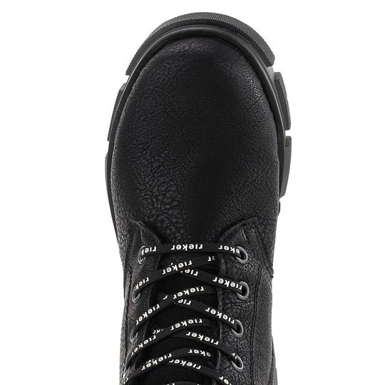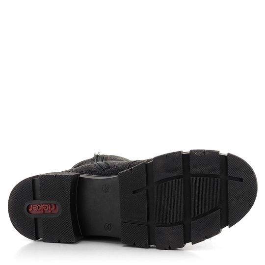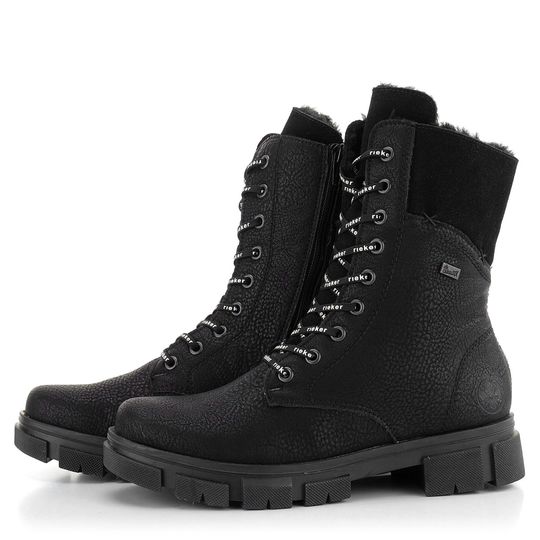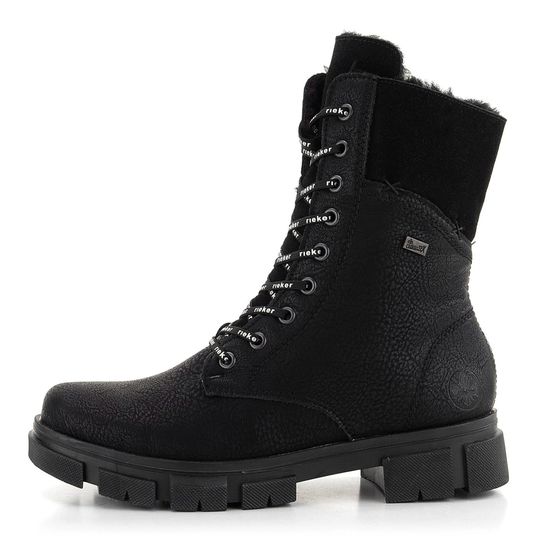 Dámské vyšší kotníkové boty značky Rieker jsou ideální volbou pro podzimní a zimní sezónu. Tyto boty vynikají svým stylovým designem a praktickými vlastnostmi. Svršek je vyroben ze strukturované syntetiky, doplněný horním lemem imitujícím semiš, což dodává botám elegantní vzhled. Černá barva je univerzální a snadno kombinovatelná s různými outfity. Plochá šněrovadla s potiskem značky a zip na vnitřní straně zajišťují snadné obutí. Uvnitř najdete teplou podšívku z umělého beránka, která vás udrží v teple během chladných dnů. Vyměkčená stélka potažená filcem a latexová platforma s hrubším vzorkem poskytují maximální pohodlí a stabilitu. Boty jsou vybaveny funkční vodoodpudivou membránou RiekerTEX®, takže vaše nohy zůstanou suché i v nepříznivém počasí. S výškou podpatku 4 cm a výškou kotníku 17 cm (bez podpatku) jsou tyto boty skvělou volbou pro každodenní nošení.