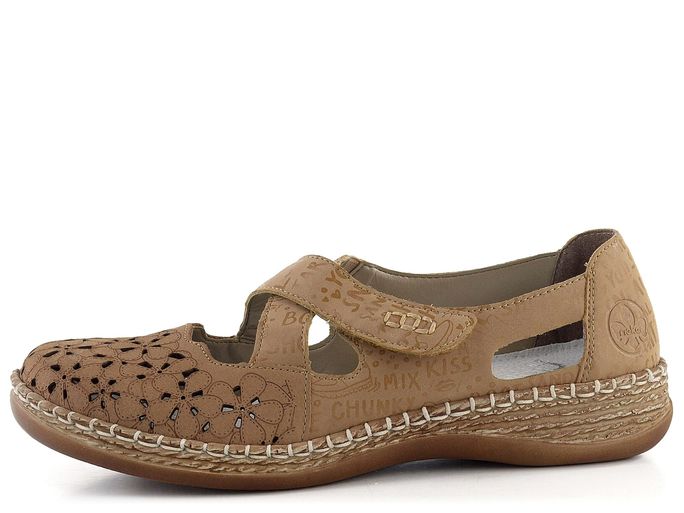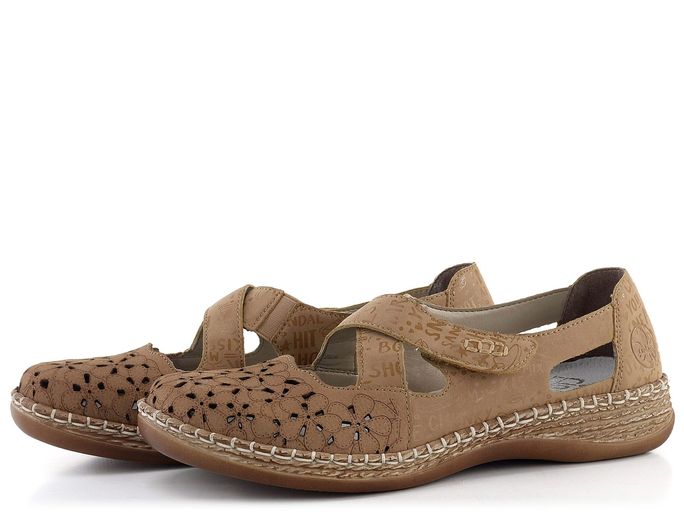 Pro ženy, které hledají stylovou a pohodlnou obuv pro jarní a letní dny, jsou tu dámské polobotky od značky Rieker. Tyto boty vynikají prostorným kulatým střihem a kombinací syntetického a koženého svršku s matnou úpravou na špičce. Tmavší béžové odstíny jsou doplněny o jemný textový potisk, který dodává botám unikátní vzhled.