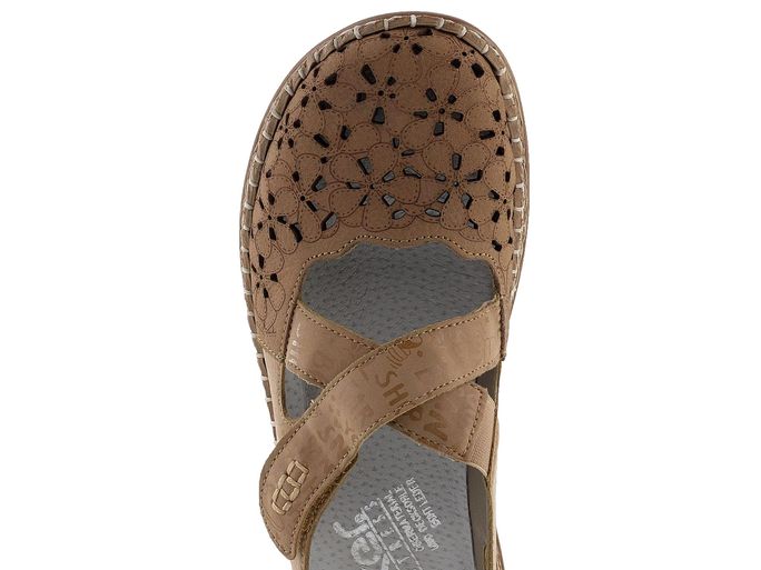 Špička je zdobena prořezáváním do květovaného motivu, což nejen přidává na estetice, ale také zajišťuje lepší prodyšnost. Křížené pásky na nártu s pruženkou a suchým zipem zajišťují snadné a pohodlné obouvání. Vnitřní podšívka je vyrobena z hladké syntetiky, což zaručuje komfort při každodenním nošení.