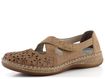 Dámské vzdušné polobotky v tmavší béžové barvě, s kříženými pásky na nártu a prořezávanou špičkou.