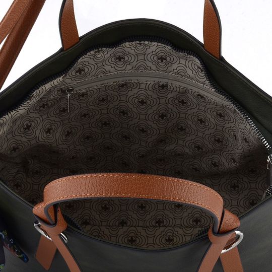 Elegantní dámská shopper kabelka od značky Rieker je ideálním doplňkem pro podzimní a zimní sezónu 2023/24. Tento model vyniká svou prostorností a pohodlně pojme formát A4. Vyrobena je z jemně strukturované syntetiky v temně zelené (olivové) barvě, která je doplněna o madla a popruh v oříškově hnědé barvě. Kování ve stříbrné barvě dodává kabelce nádech elegance.