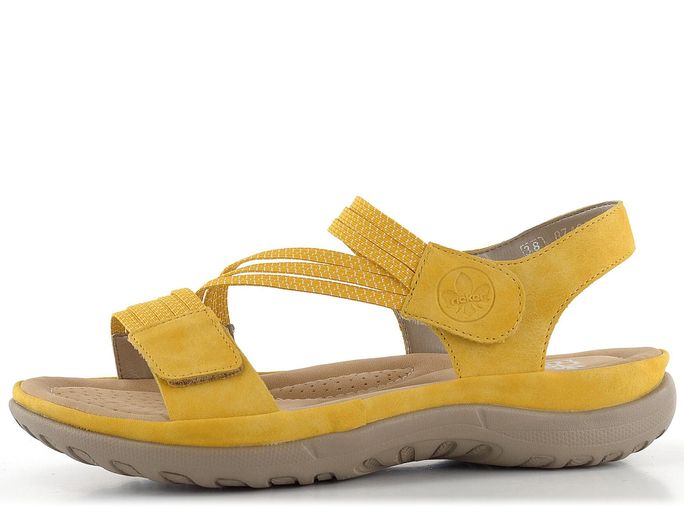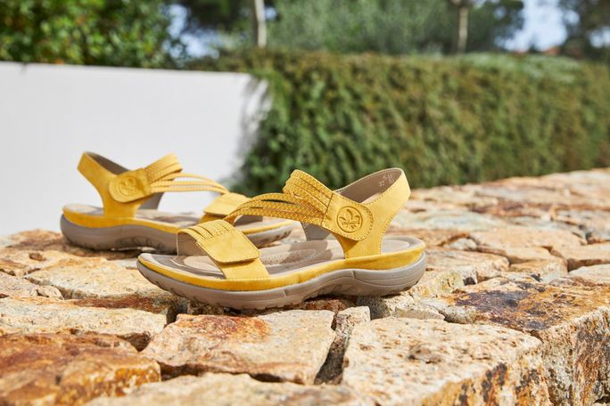 Hledáte-li pohodlné a stylové sandály na jaro a léto, pak jsou sandály značky Rieker skvělou volbou. Tyto sandály v okrovém odstínu jsou vyrobeny z kvalitní syntetiky, která je příjemná na dotek. Pružné žíhané pásečky se dokonale přizpůsobí tvaru vašeho chodidla, což zajišťuje maximální komfort při nošení. Zapínání na suchý zip na předním pásku i kolem nohy umožňuje snadné obouvání a vyzouvání. Sandály mají anatomicky tvarovanou stélku, která poskytuje příjemnou měkkost a podporu vašim nohám. Navíc jsou velmi lehké, takže je na noze téměř neucítíte. Podešev je také vyrobena ze syntetiky, což zajišťuje dlouhou životnost a odolnost. S výškou podpatku 3,5 cm jsou ideální pro celodenní nošení, ať už se vydáte do města nebo na lehkou procházku. Sandály značky Rieker kombinují styl a pohodlí, což z nich činí perfektní volbu pro každou ženu.