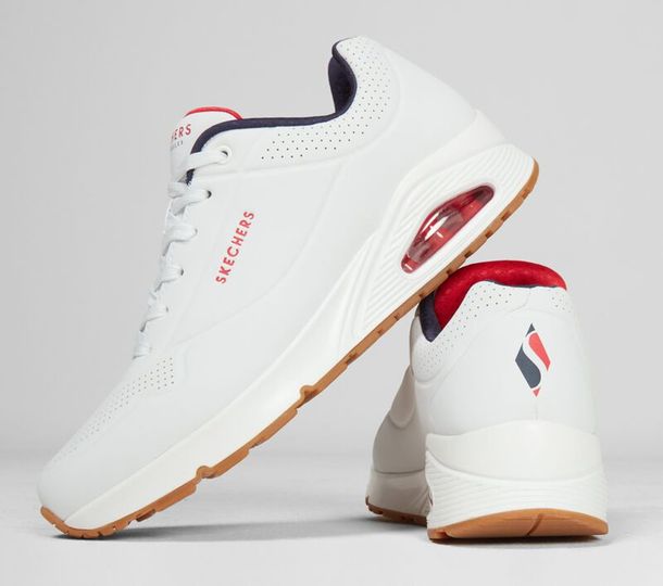 Pánské streetové polobotky v bílé barvě s měkkým polstrováním uvnitř a odpruženou patou se vzduchovým polštářkem v mezipodešvi.